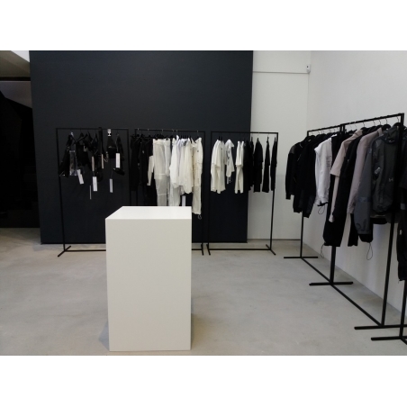 Solits’ plinths are hollow, which makes them lightweight and surprisingly strong: up to 100 kg load-bearing capacity. We supply standard sizes from stock but also manufacture fully customized white plinths. You determine the height, width, and shape. Whether you’re looking for a white display plinth for a shop, a white cube for a counter, or a white plinth for an exhibition stand, we can make it for you!