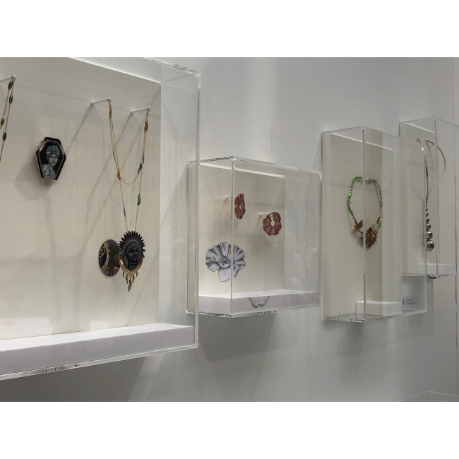 Are you looking for a stylish way to present something on the wall? Would you like to protect your artwork or to draw extra attention to the product that is presented on the wall? We have had so much demand for a wall display recently that we had to come up with a solution for this. Our product development team has created a number of wall display versions, which are suitable for various purposes and cater to different tastes. We manufacture different types of MDF bases and, if desired, add a suitable acrylic display case. Our wall displays have a built-in hanging system that allows you to easily hang them. We have our own workshop, where our furniture makers and Plexiglass experts can quickly customize wall displays for our clients, allowing them to present their product or artwork inside a museum quality display.